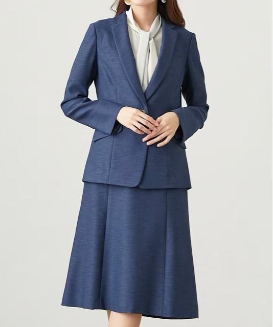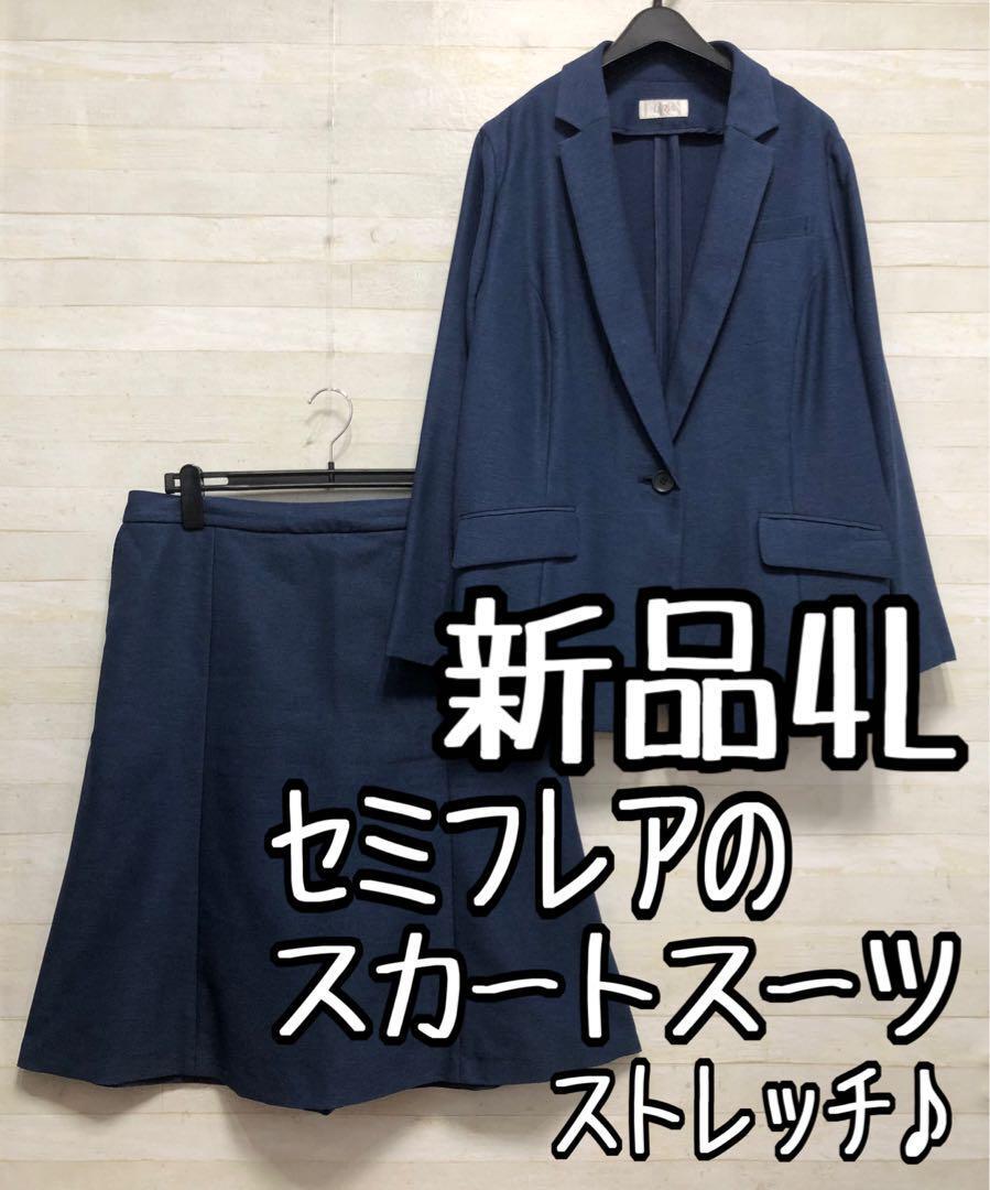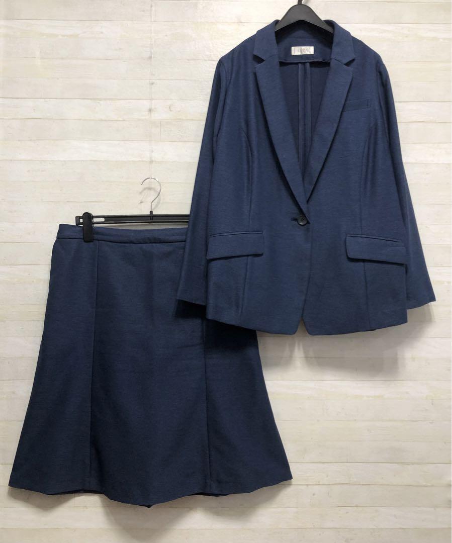 新品☆4Lブルー系テーラードジャケット&セミフレアスカートスーツお仕事〇D375