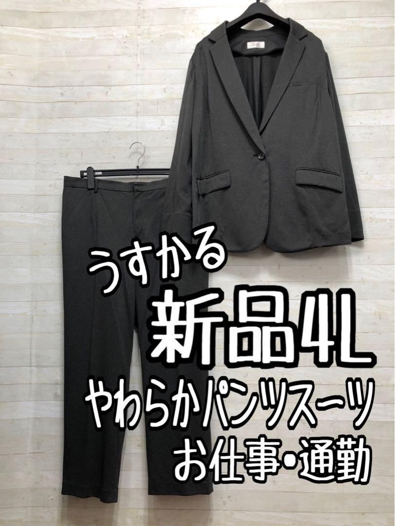 新品☆4L♪グレー系やわらかカットソー地パンツスーツ♪軽量○D165
