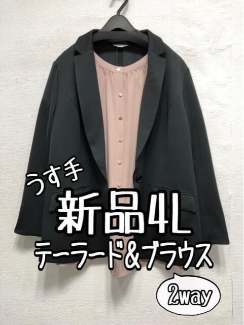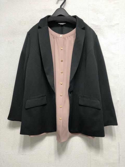 新品☆4L♪黒系テーラードジャケット&うす手ブラウス♪お仕事・通勤☆a405