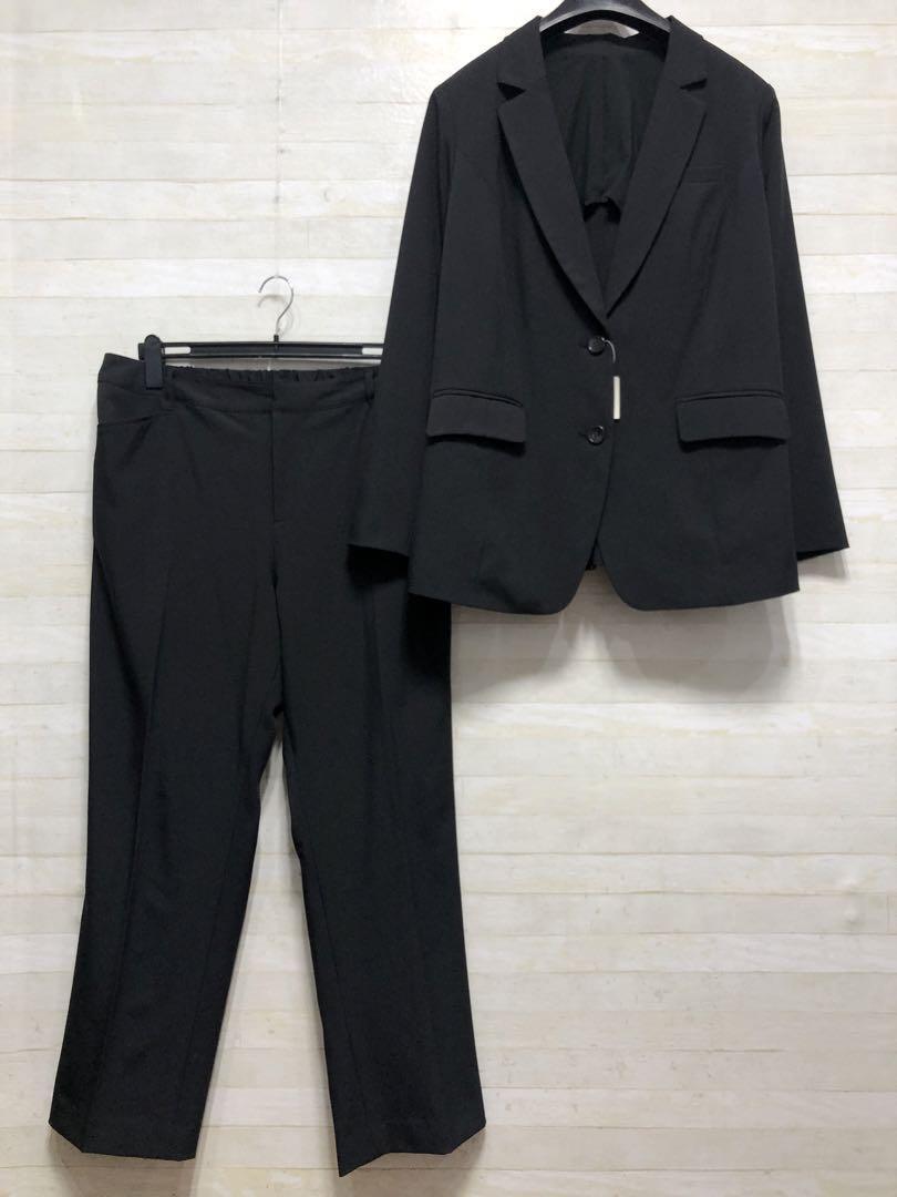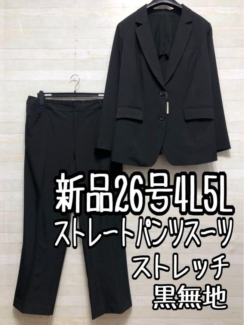 新品☆26号4L5L黒系無地パンツスーツ♪ストレッチお仕事・フォーマル◯G194