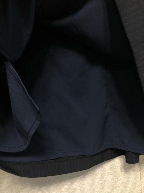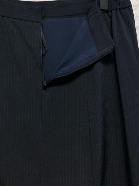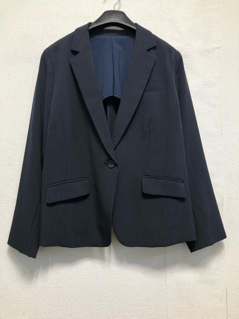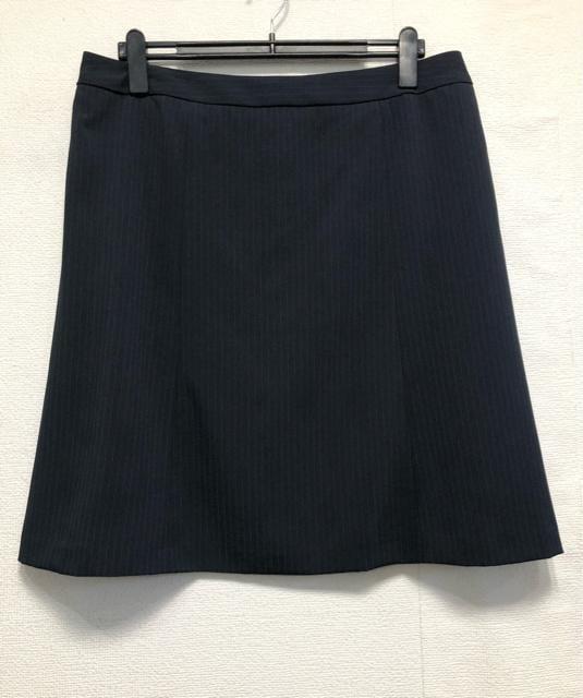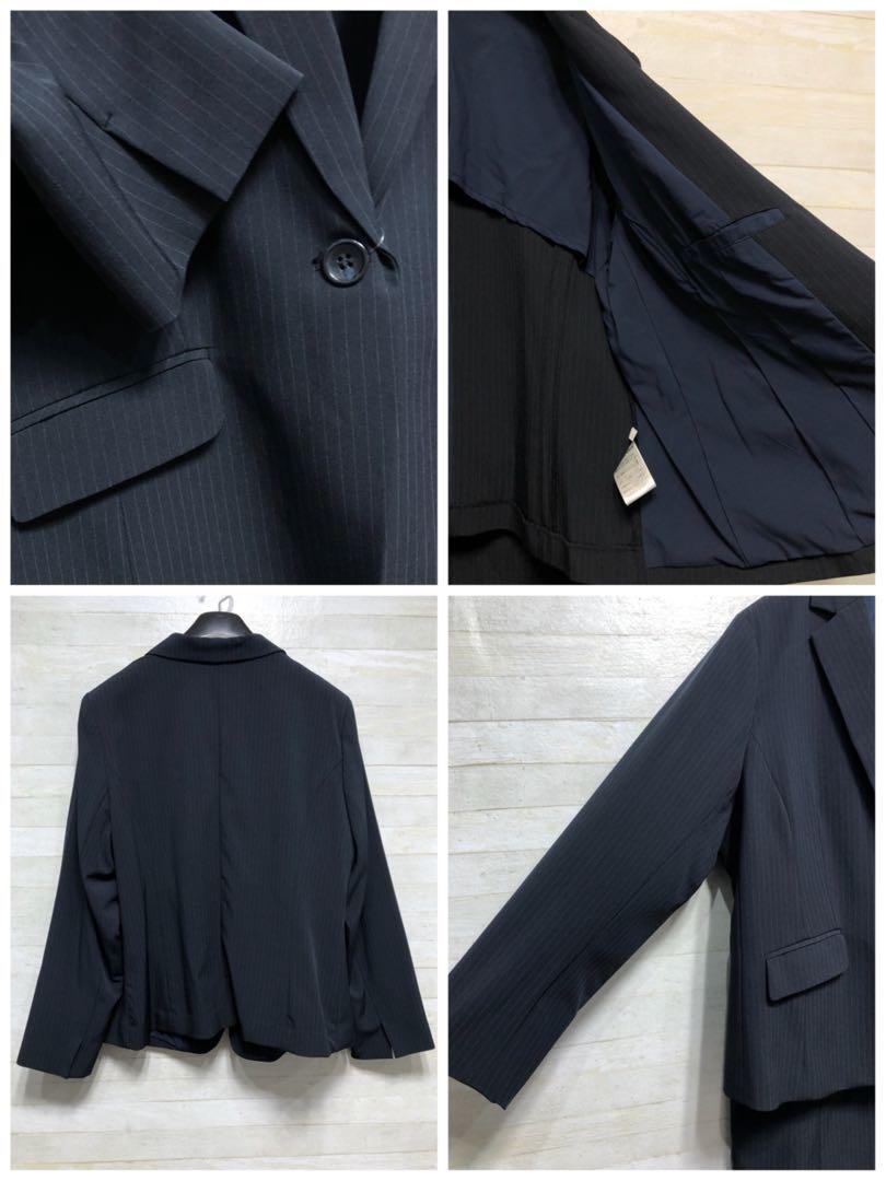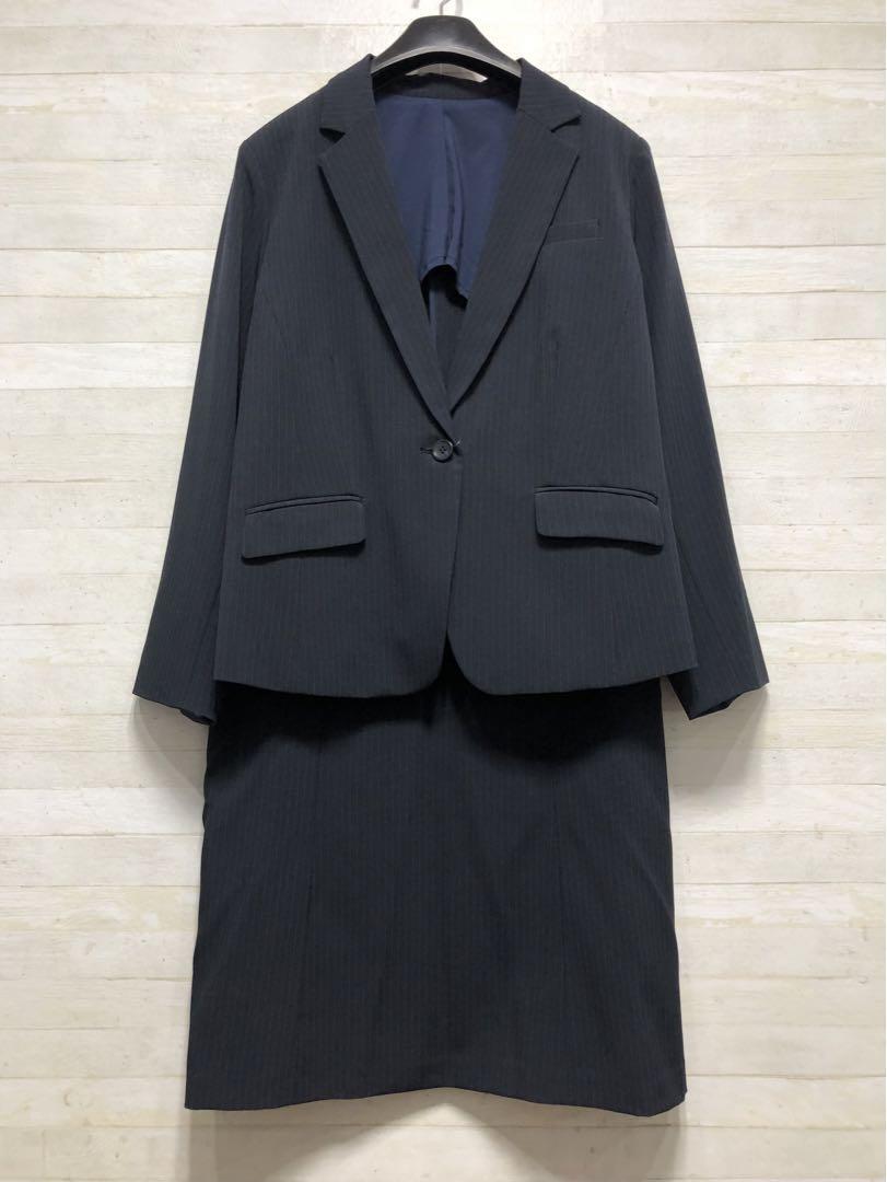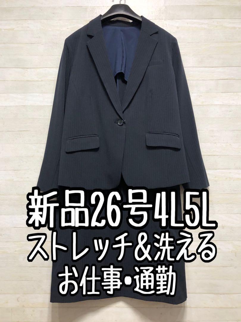 新品☆26号4L5L♪紺系ストライプ♪セミフレアスカートスーツ♪お仕事〇G193