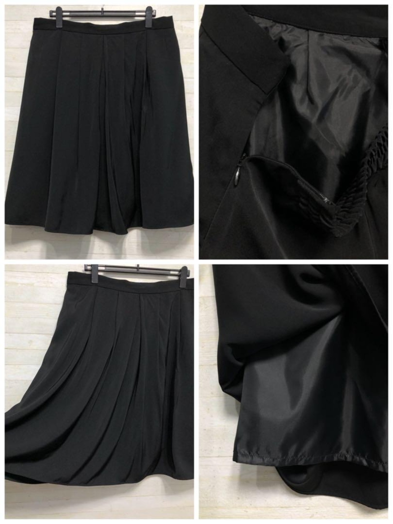 テロンとした素材の前プリーツスカート