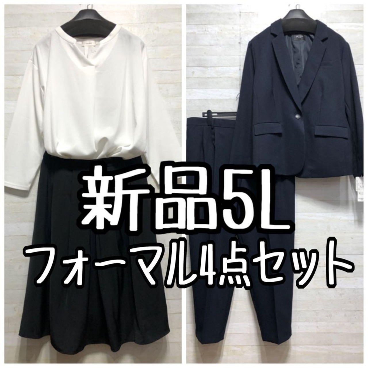 新品☆5L紺系♪フォーマルスーツ4点セット♪パンツ・スカート〇B960