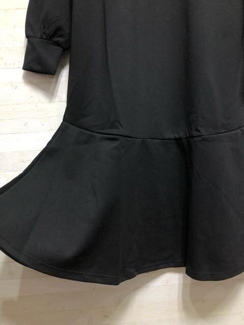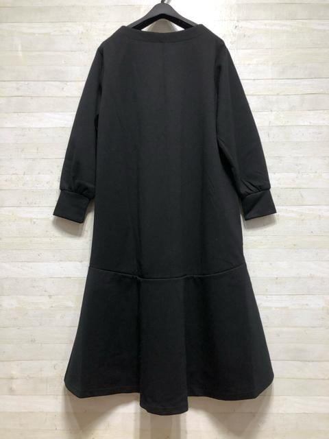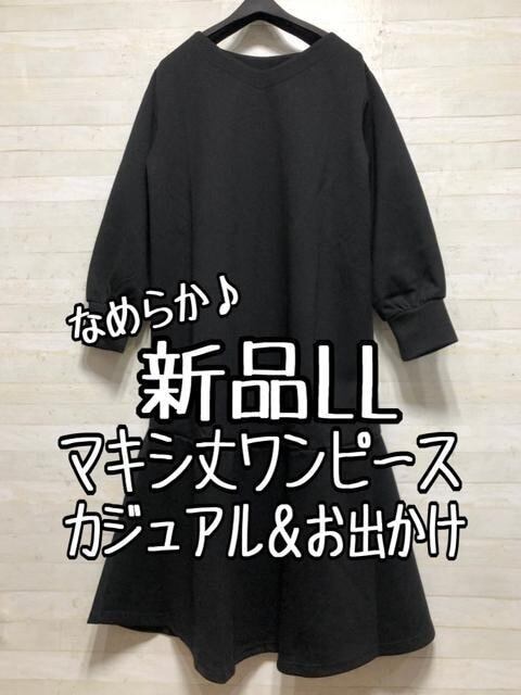 新品☆LL黒系無地なめらか素材♪マキシ丈ワンピース〇B811