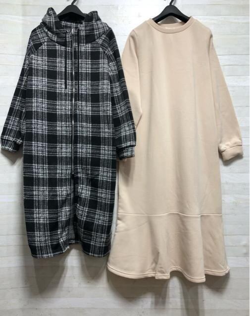 新品☆L~LLあったか裏起毛♪マキシワンピ&ロングパーカー〇B812
