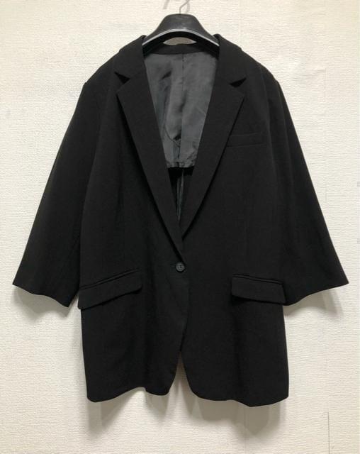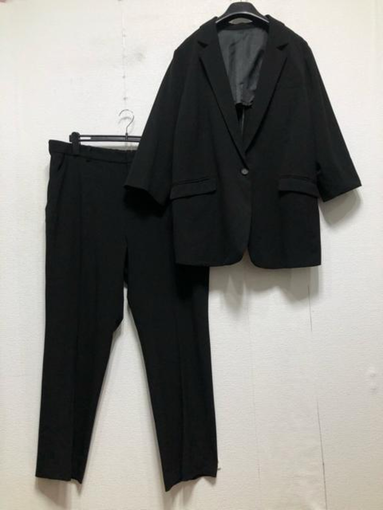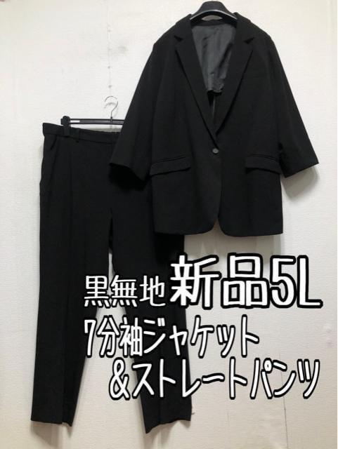 新品☆5L黒系7分袖ストレートパンツスーツ♪ストレッチお仕事フォーマル☆r500