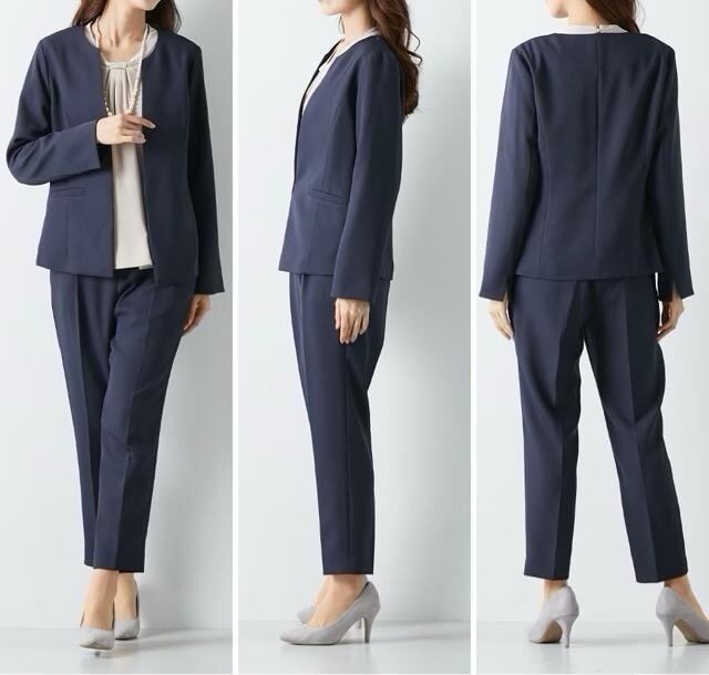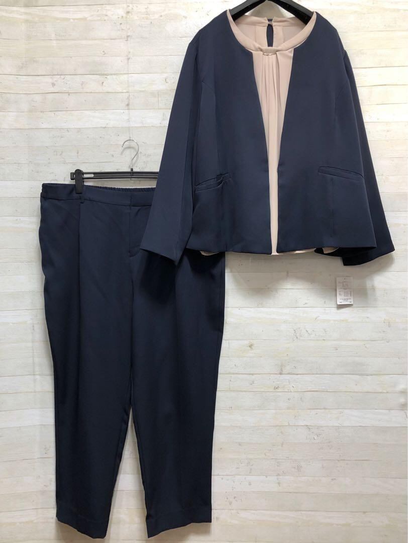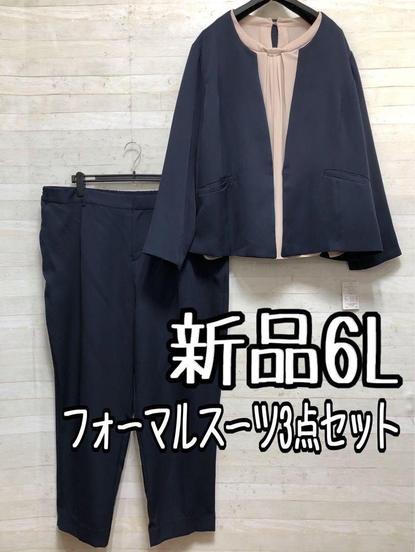 新品☆6L紺系♪ストレッチパンツスーツ3点セット♪フォーマル〇D162