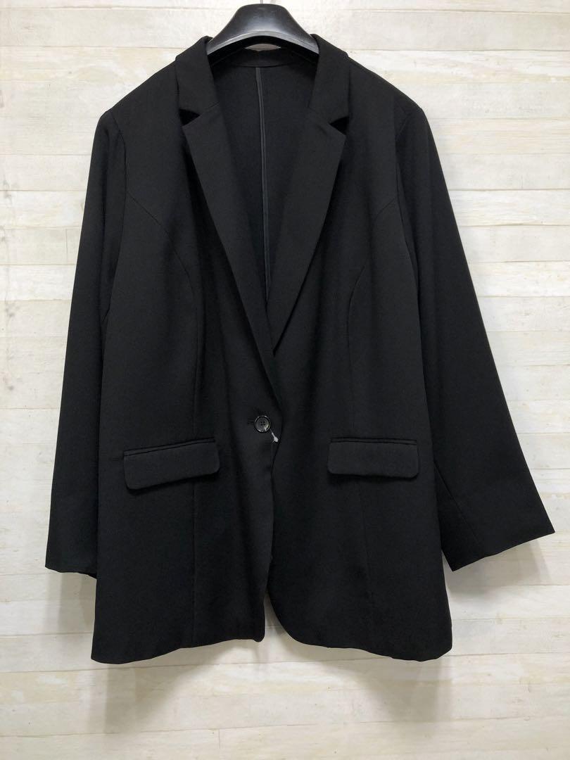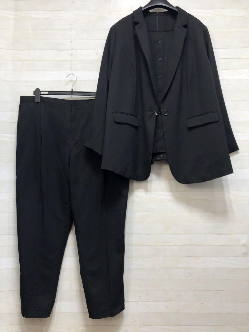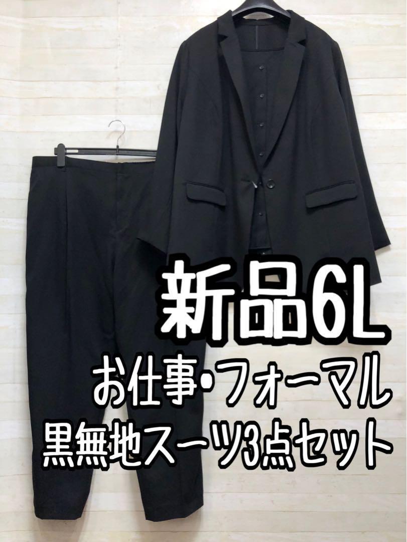 新品☆6L黒無地♪テーパードパンツスーツ3点セット♪セットアップ〇D351