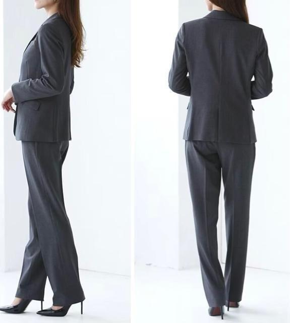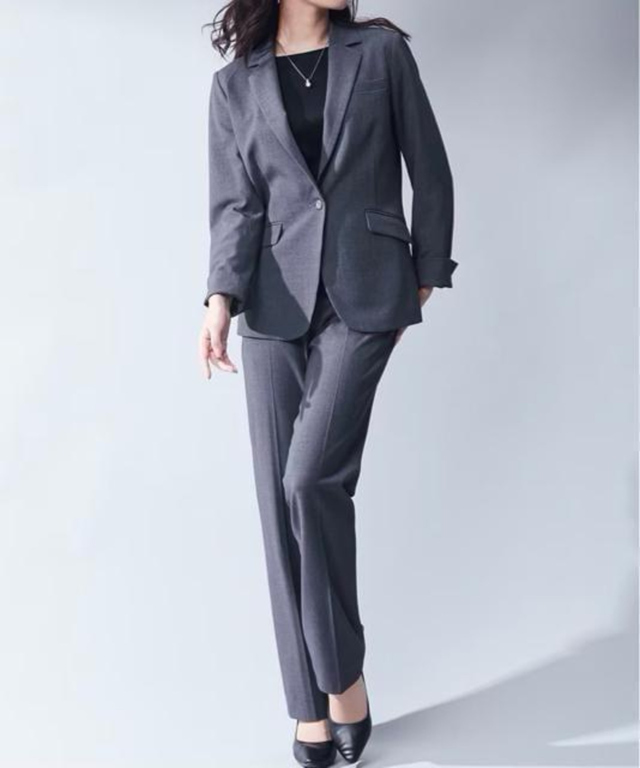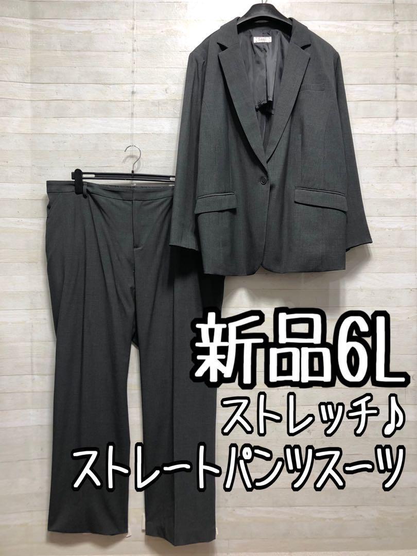 新品☆6Lグレー系ストレートパンツスーツストレッチお仕事フォーマル〇G282