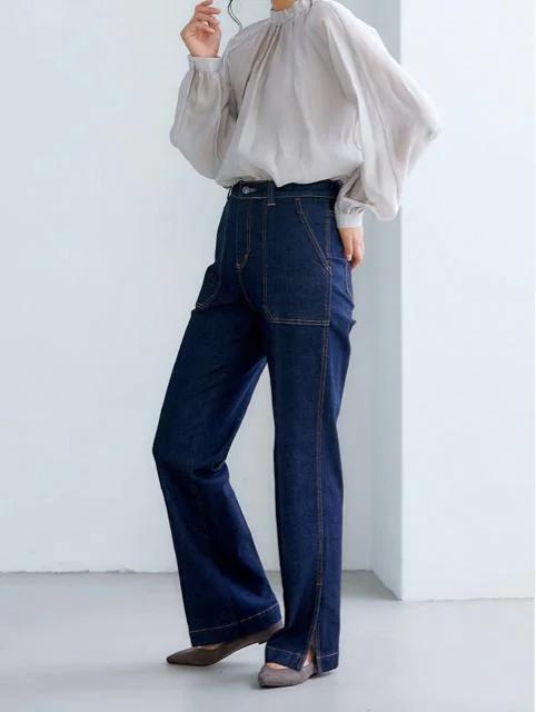 股上深めのストレートデニム。