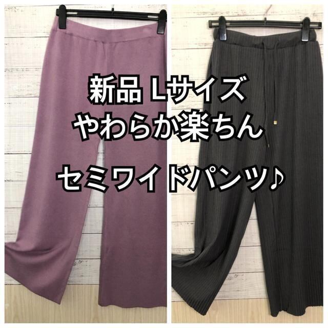 新品☆L♪グレー系&パープル系♪超楽ちんやわらかセミワイドパンツ♪☆y556
