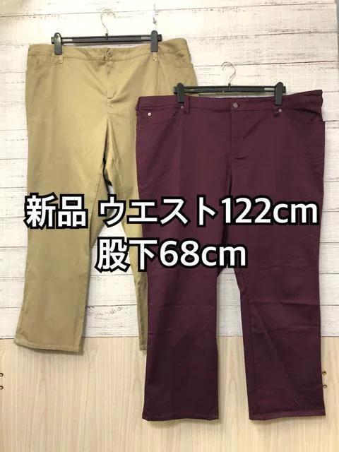 新品6Lサイズ W122 股下68cm♪ストレッチストレートパンツ2種☆h503