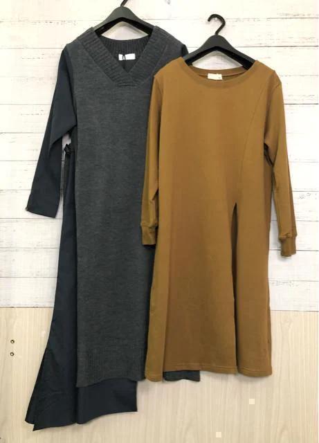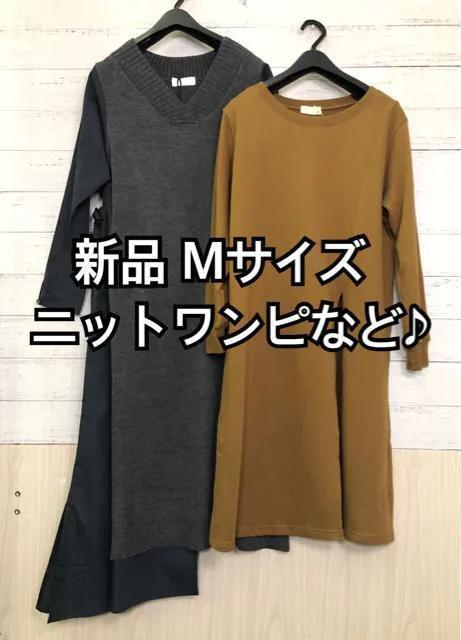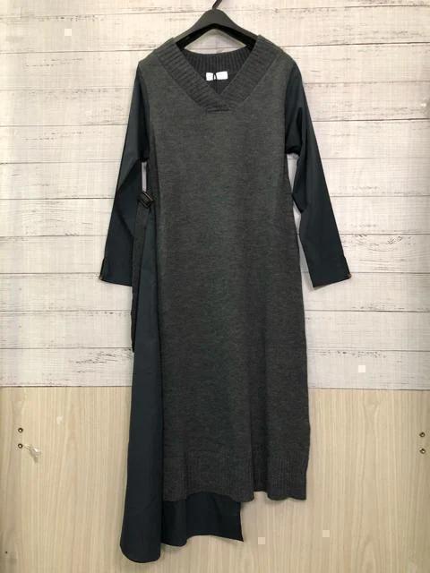 新品☆M♪グレー系♪重ね着ニットロングワンピ&スウェット地ワンピ☆y588