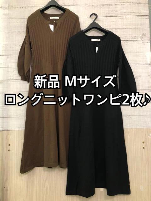新品☆M♪黒系×茶系♪お洒落ニットロングワンピースを2枚☆y632