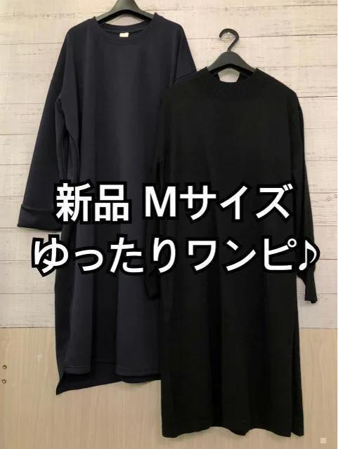 新品☆M♪黒系ニットワンピ&紺系の超ゆったりストレッチワンピ☆y641