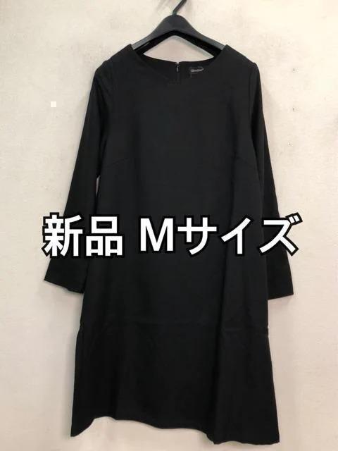 新品☆M♪黒系♪シンプルお出かけワンピース裏起毛☆f362
