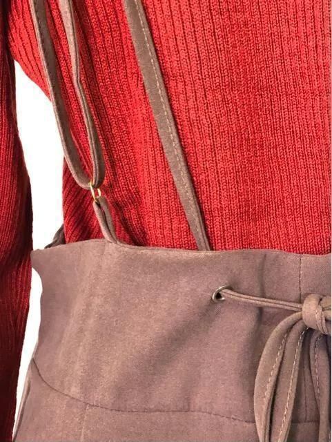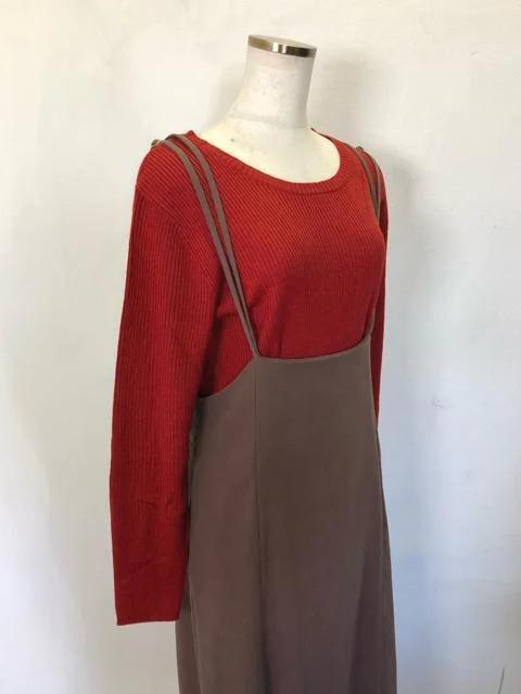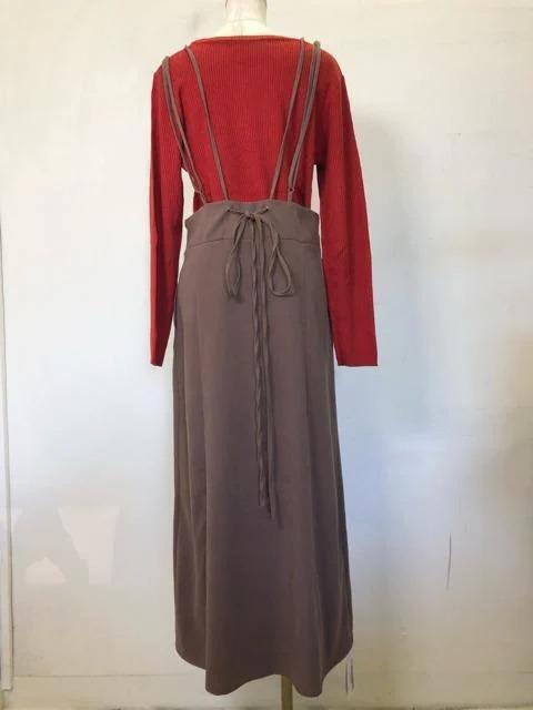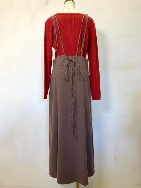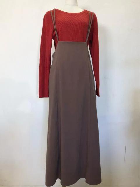 新品☆L♪ブラウン系きれいめサロペットスカート♪おまけ付!☆h444