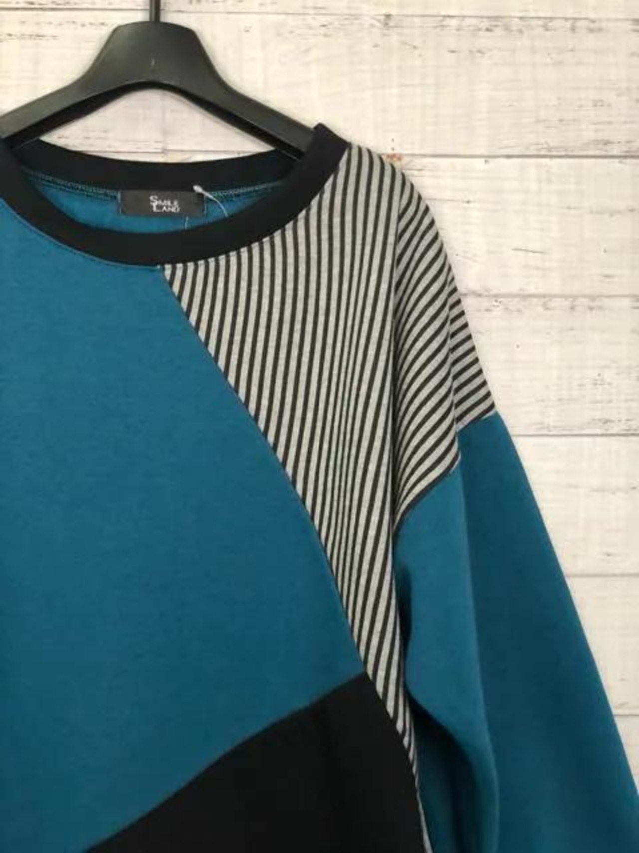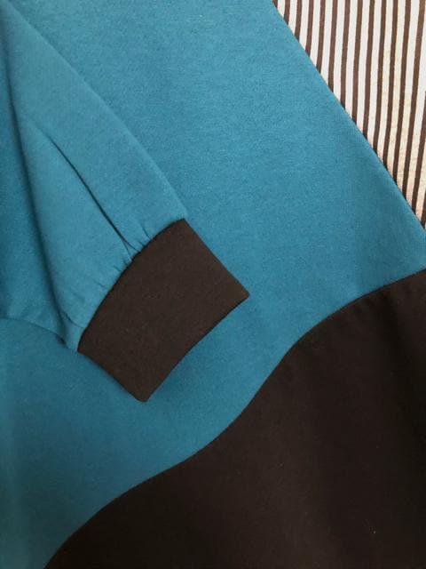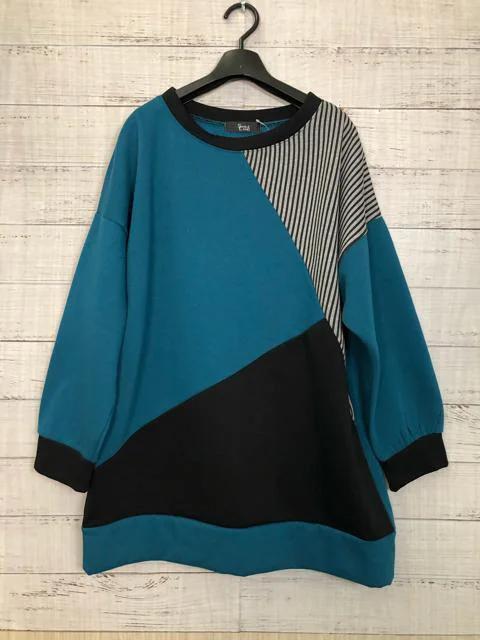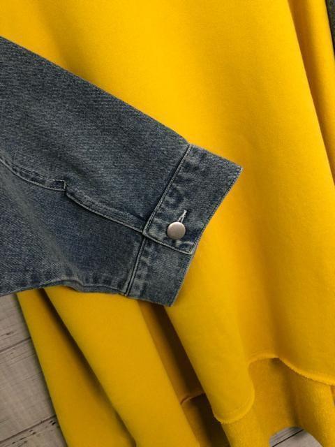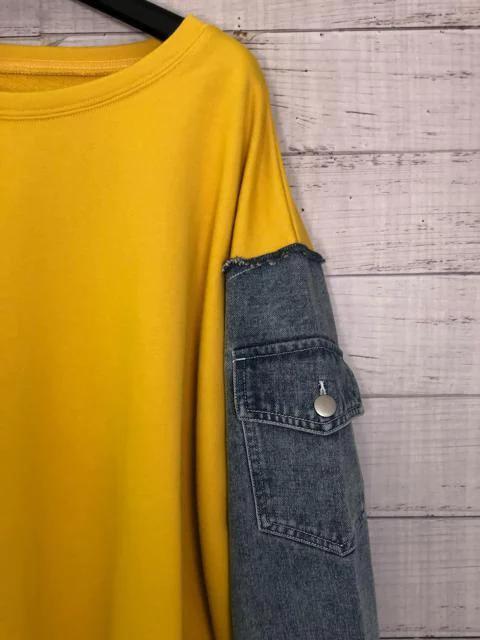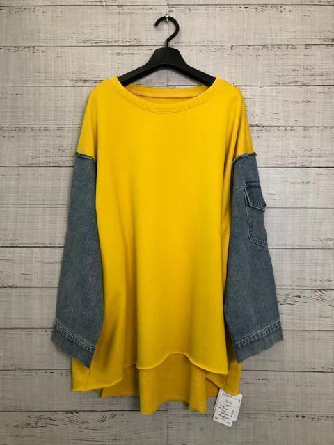 裏パイルスウェット地×デニムのゆったりトップス