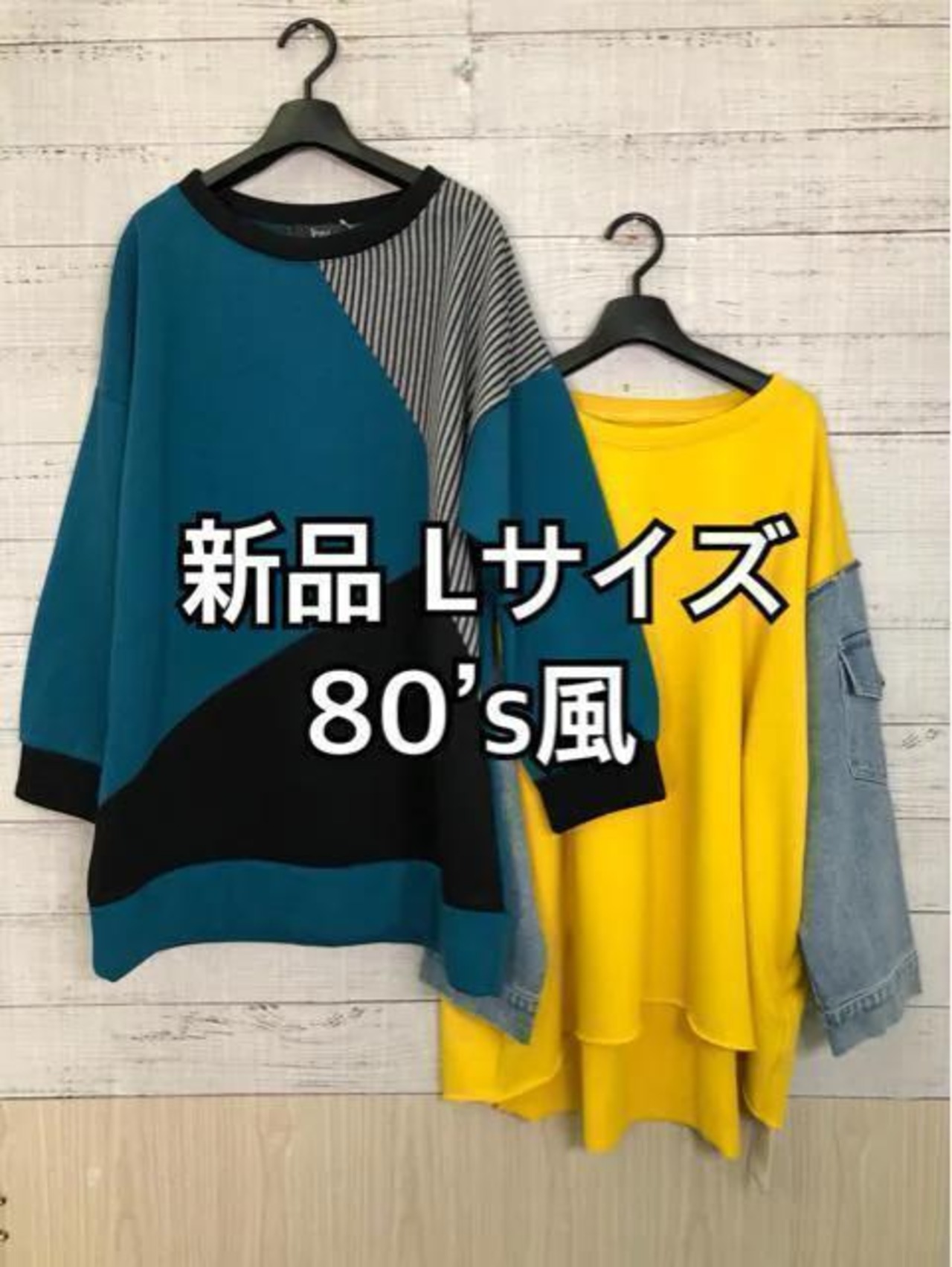 新品☆L♪80's風おしゃれデザインのトップス2枚♪ゆったり素材も☆h804