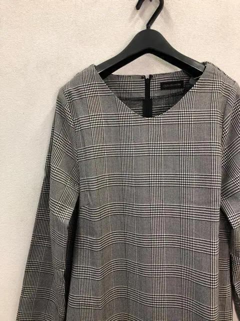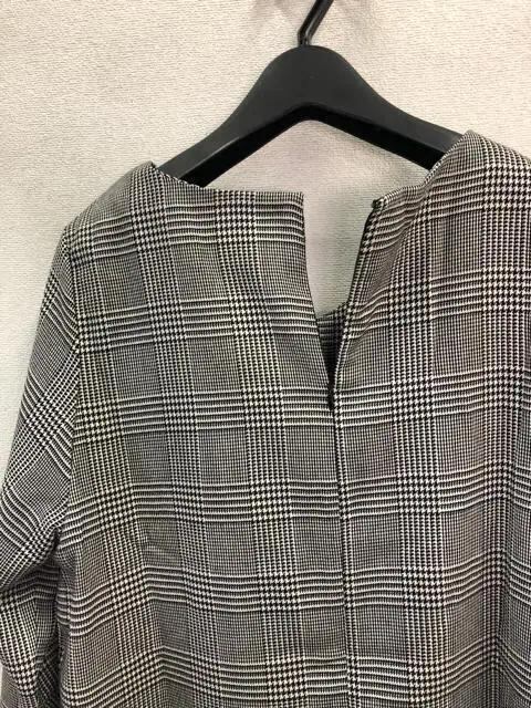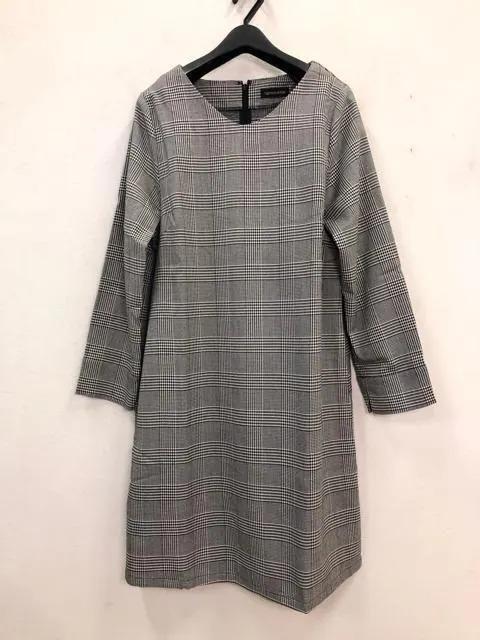 新品☆Lサイズ♪グレー系♪上品チェックのシンプルワンピース☆f342
