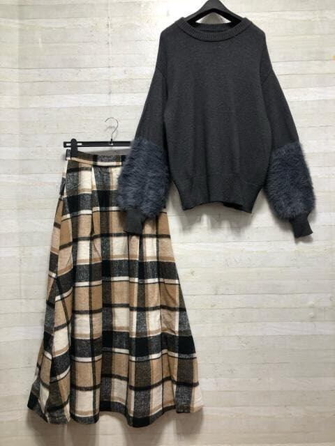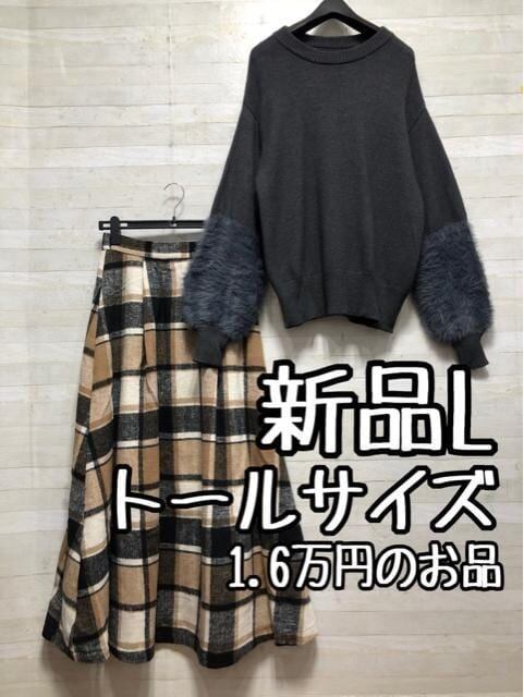 新品☆Lトール♪袖シャギーニット&ロングスカート♪1.6万円のお品〇B821