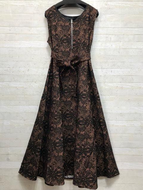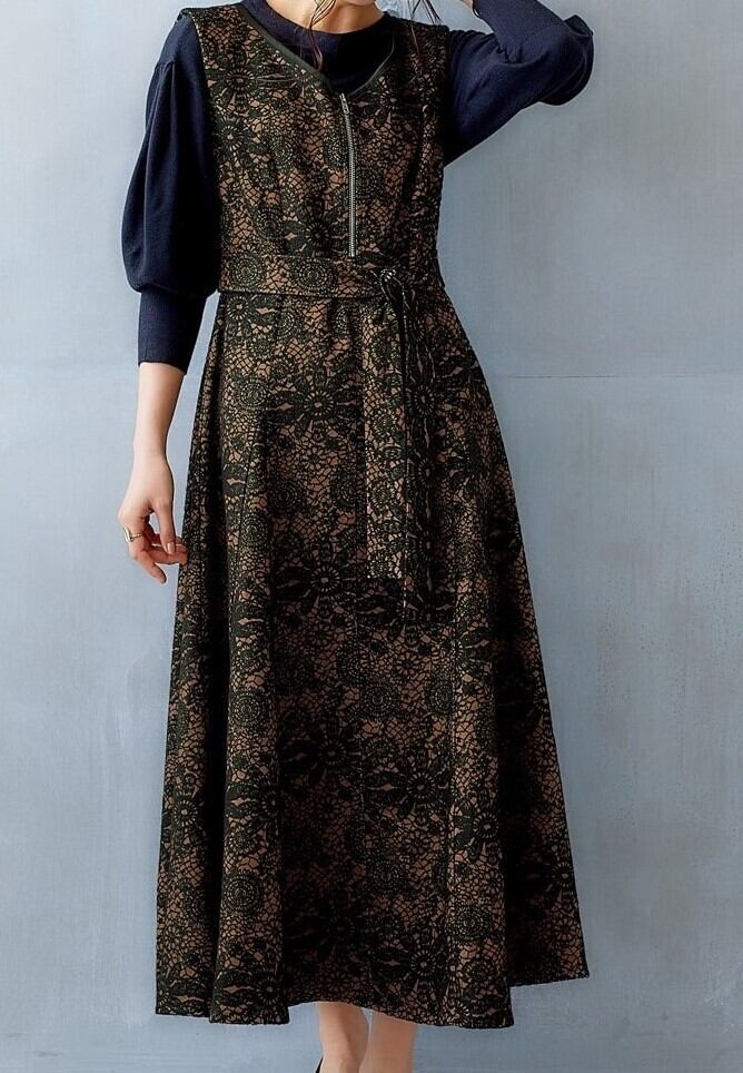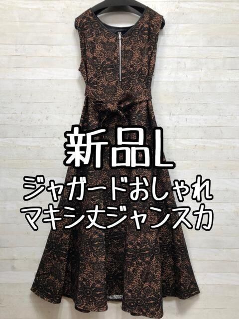 新品☆L黒×モカ系♪ジャガードおしゃれ♪ロング丈ジャンスカ〇B852