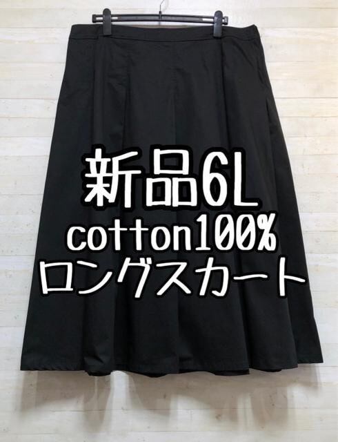 新品☆6L黒系無地コットン100%ロングスカート〇B857