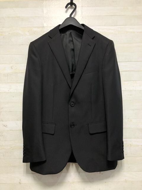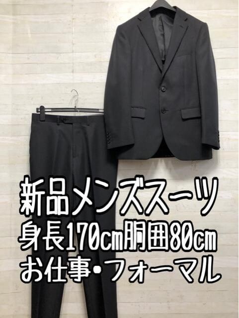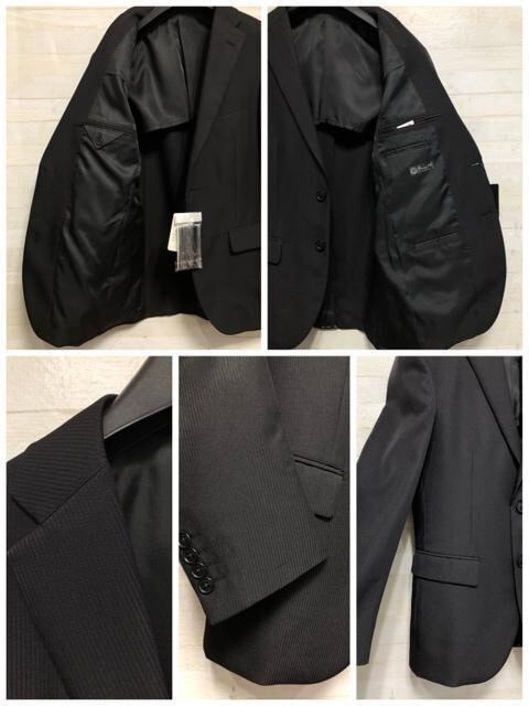 新品☆メンズ身長170cmウエスト80cm黒系ストライプスーツ♪お仕事〇B866