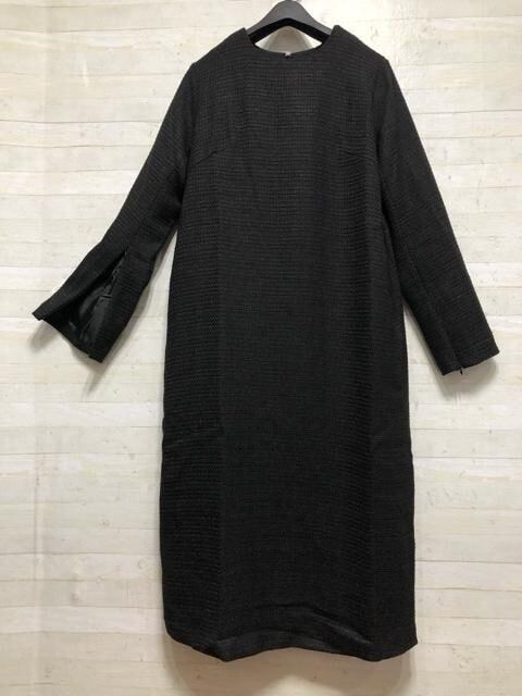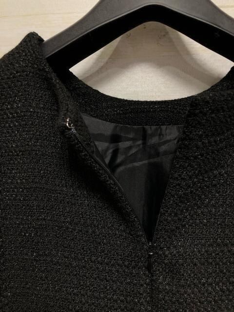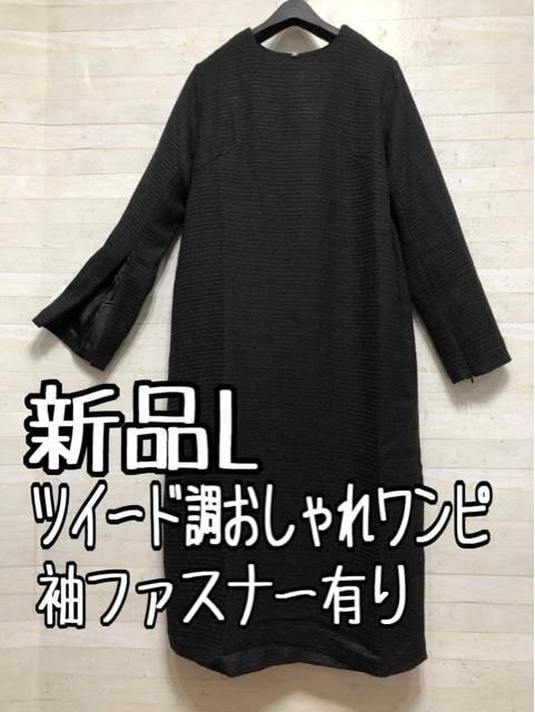 新品☆L黒系♪シンプルデザイン高級感のあるツイード調ワンピース〇B874
