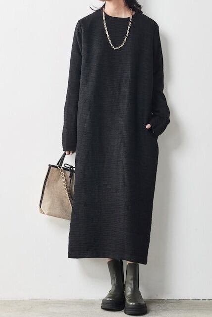 クルーネックワンピ