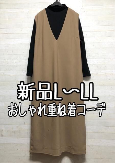 新品☆L~LL♪おしゃれ重ね着コーデ♪マキシ丈ジャンスカ&リブカットソー〇B889