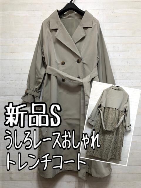新品☆Sくすみグリーン系♪後ろレースかわいいトレンチコート〇B907