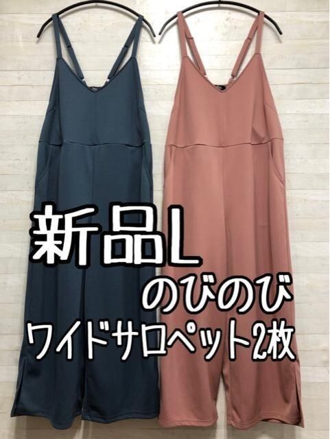 新品☆Lブルー×ピンク系♪くすみカラー素敵なサロペット2枚セット〇B939