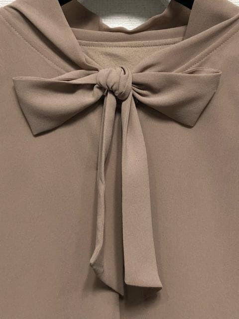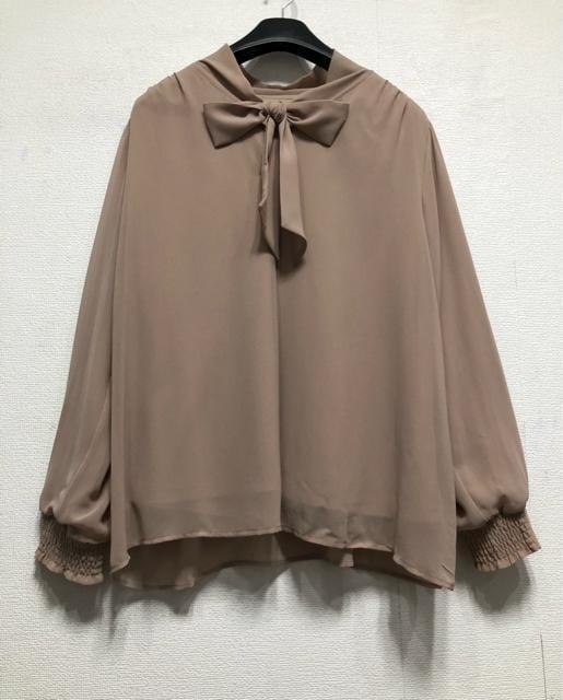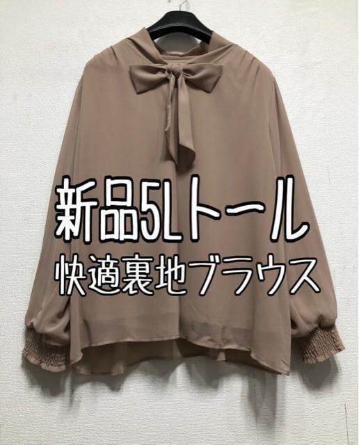 新品☆5Lトールベージュ系♪あったか裏地フェミニン♪リボンタイブラウス☆z987