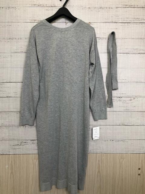 新品☆LL♪グレー系♪後ろボタン♪薄手ニットワンピース☆f991