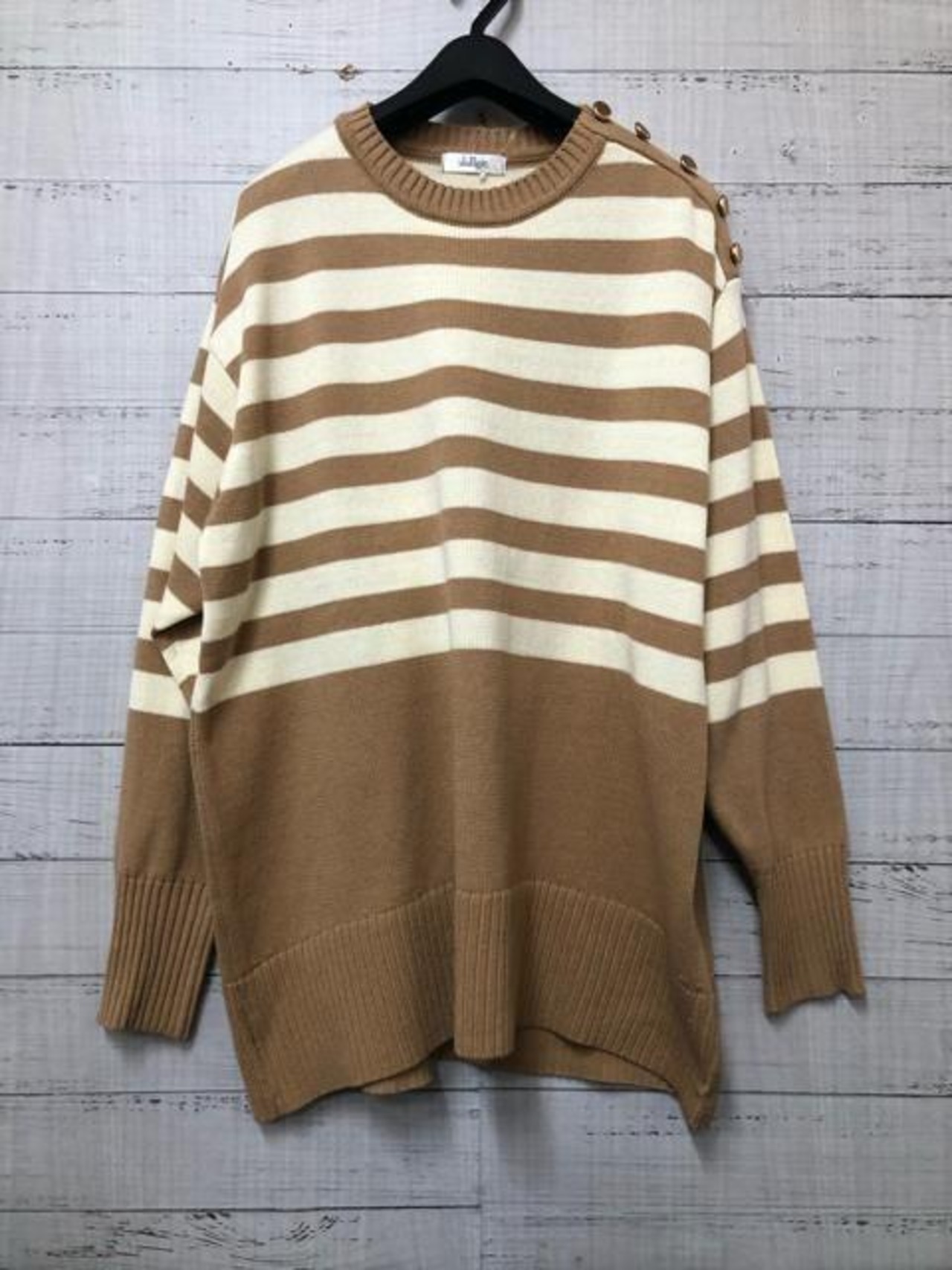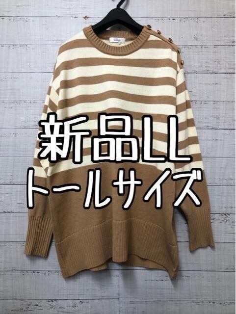 新品☆LLトールサイズ♪キャメル系マリンボーダー♪綿混ニット♪爽やか♪☆s252