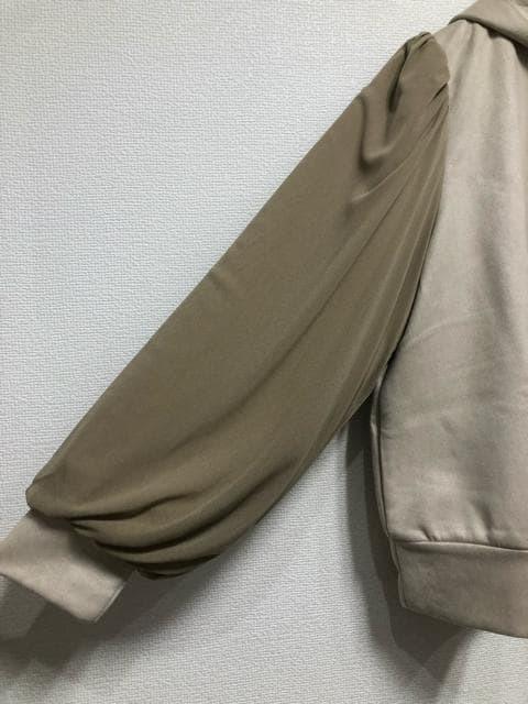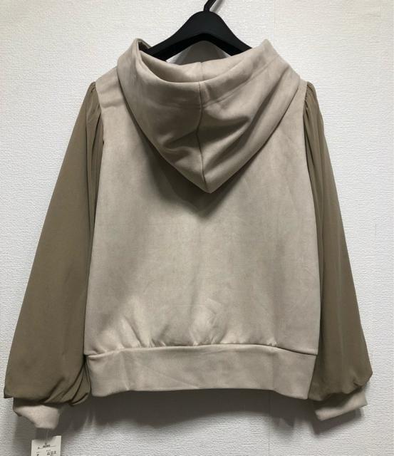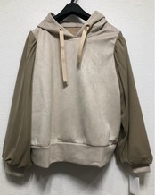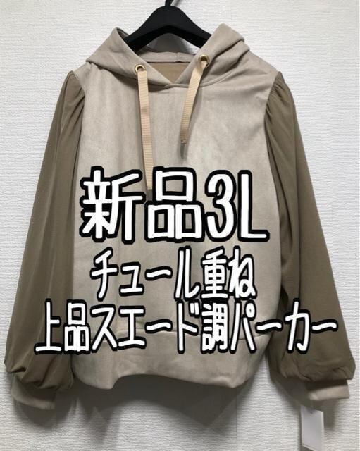 新品☆3L♪ベージュ系♪チュール重ねスウェード調パーカー☆w977