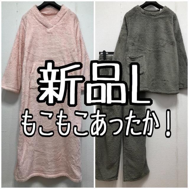 新品☆L♪ピンク×グレー系♪もこもこあったかルームウエアまとめて☆w852