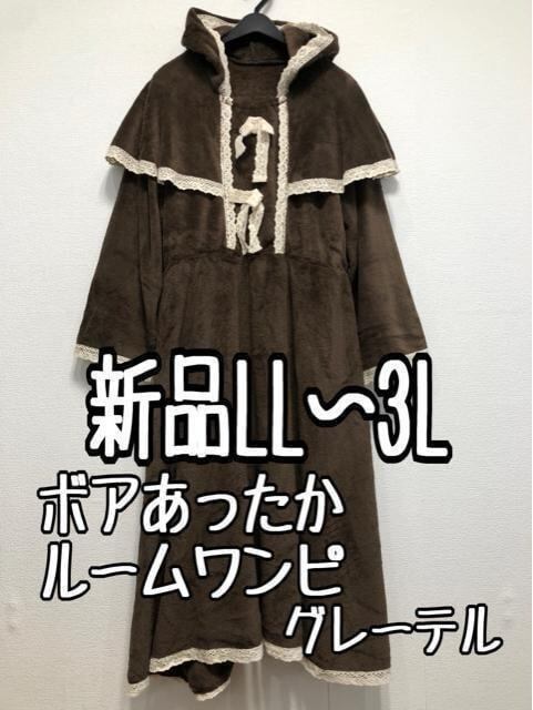 新品☆LL~3L♪茶系♪グレーテル♪ふわもこ暖かルームワンピ☆w895