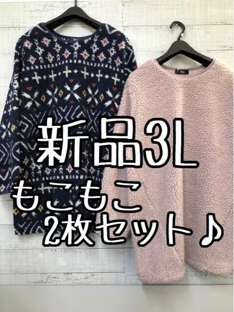 新品☆3L♪もこもこシープ調ボアのプルオーバー2枚セット♪紺&ピンク系☆s371