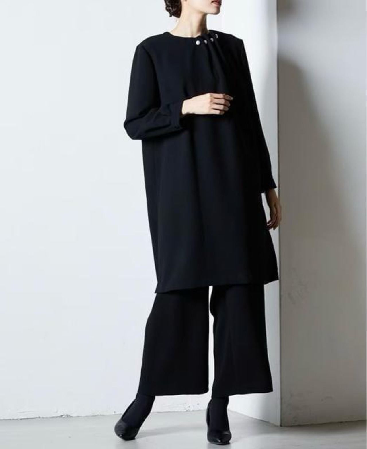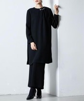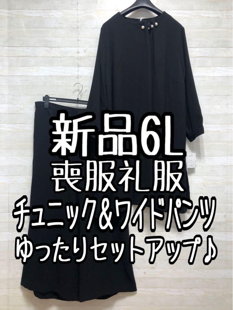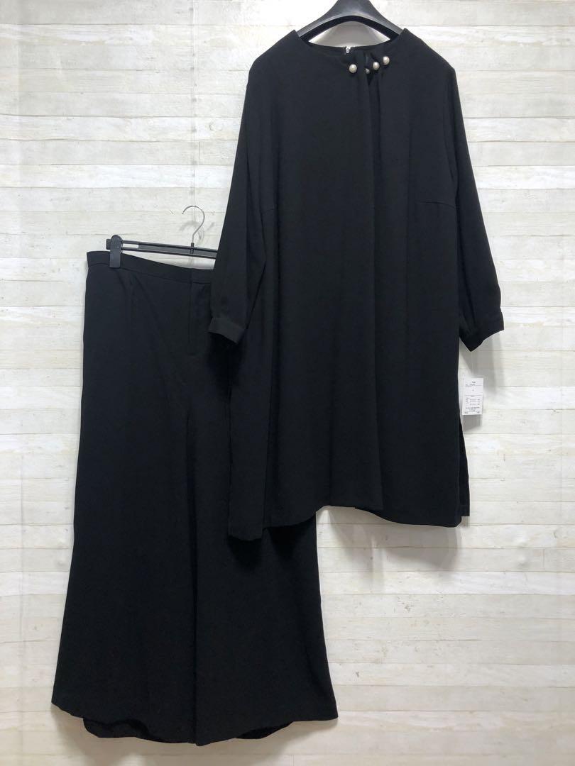 新品☆6L喪服礼服チュニック&ワイドパンツ黒フォーマルセットアップG370