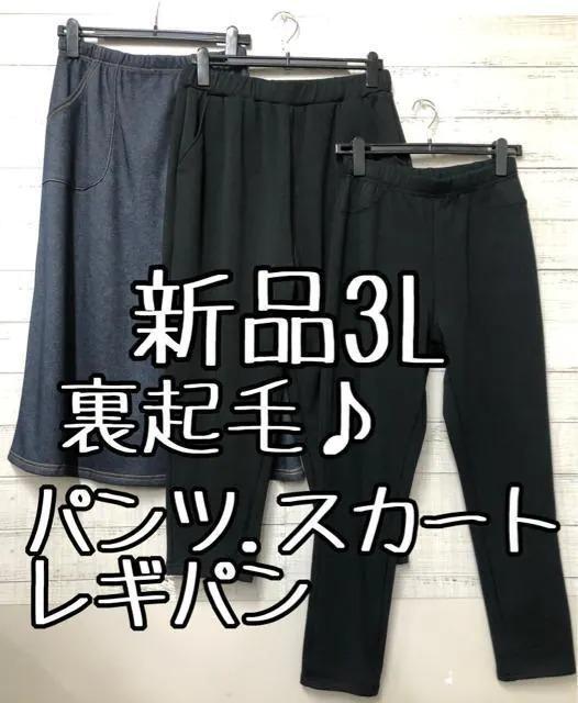 新品☆3L♪裏起毛あったか素材レギパン・ゆったりパンツ・ロングスカート☆e789