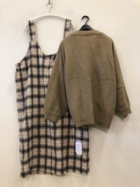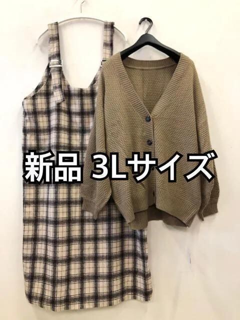 新品☆3L♪ベージュ系カーディガン&起毛ジャンパースカート☆h256
