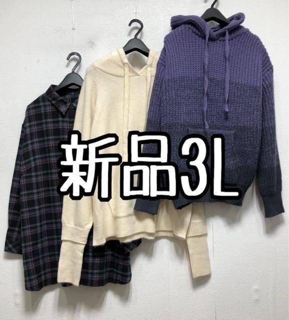 新品☆3L♪ニットパーカーなどトップス3点セット♪カジュアルおしゃれ☆z890