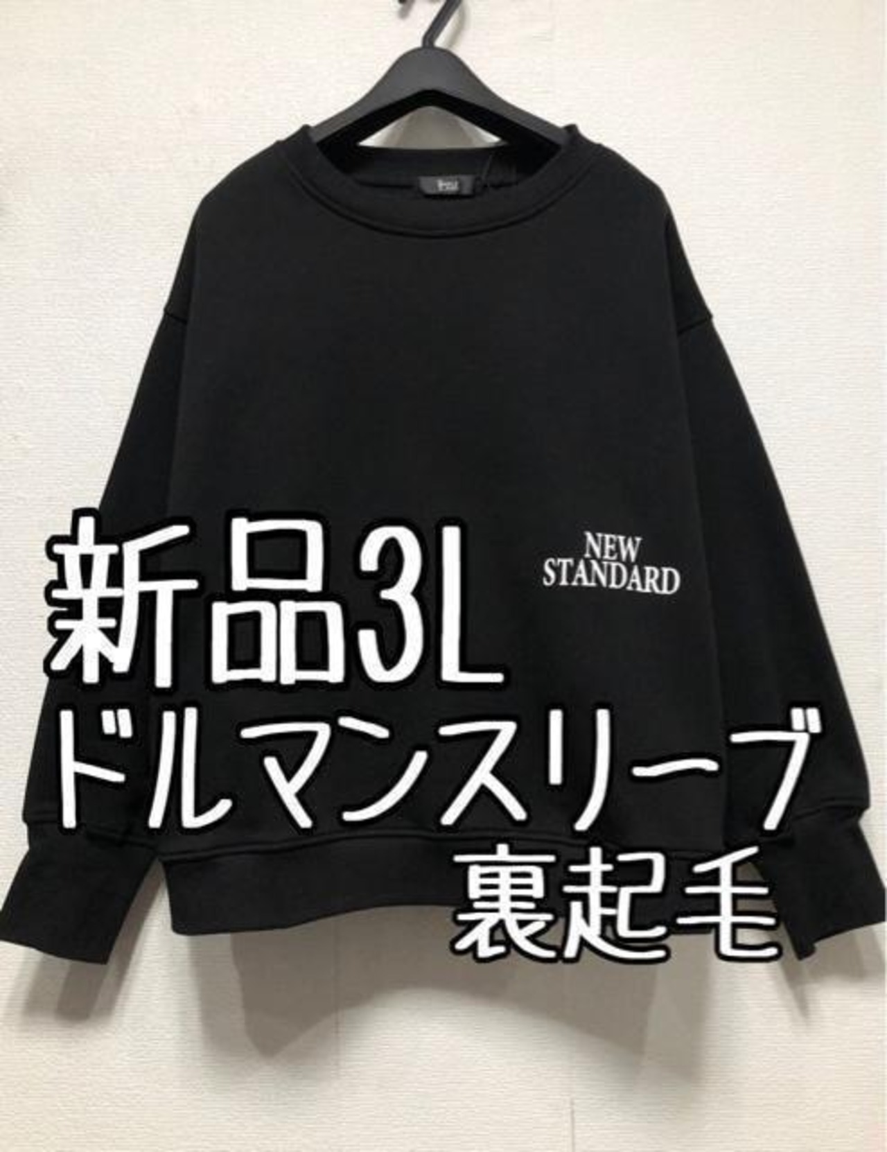 新品☆3L黒系♪ショート丈ドルマンスリーブおしゃれプルオーバー☆z866