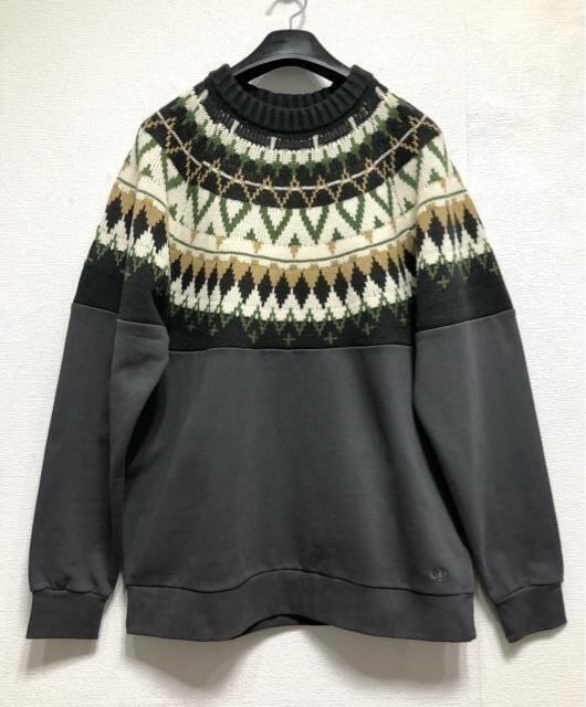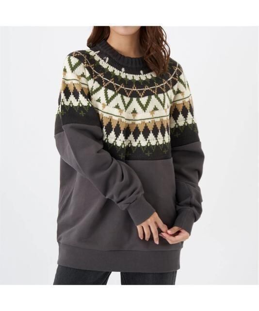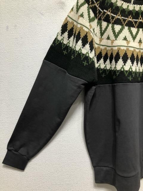 ニット×トレーナー風素材の