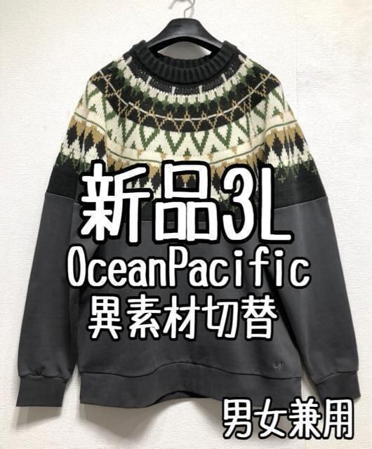 新品☆3L♪オーシャンパシフィック♪異素材切替プルオーバー☆z445