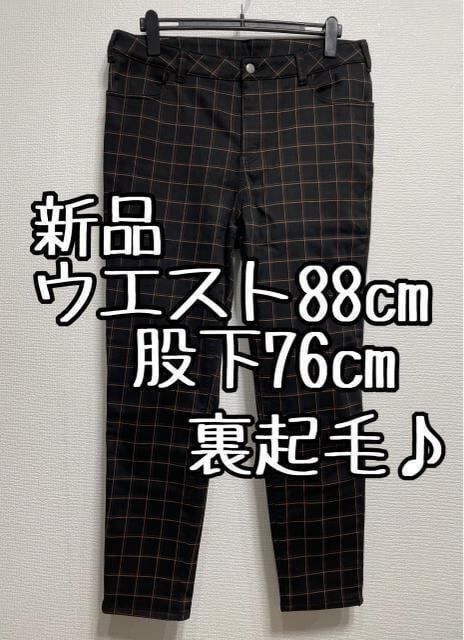 新品☆3Lウエスト88㎝黒チェック裏起毛あったかスキニーパンツ☆u561