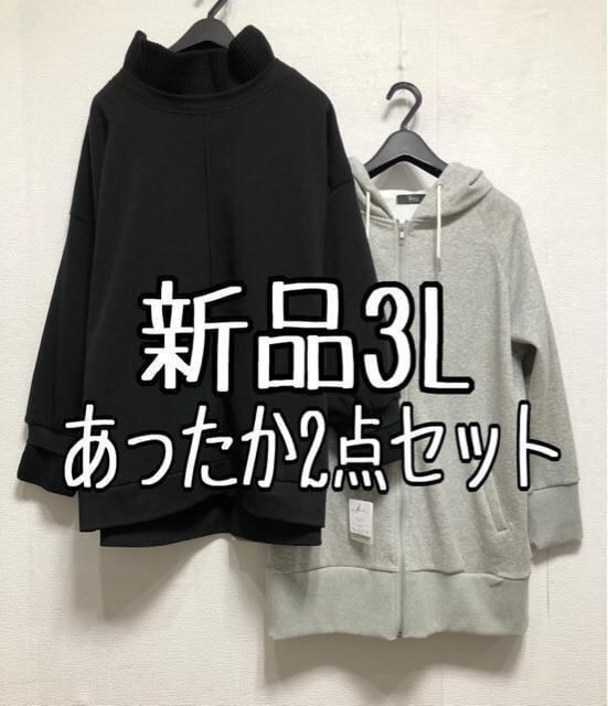 新品☆3L♪内ボアパーカー&裏起毛リブ切替プルオーバー☆z945