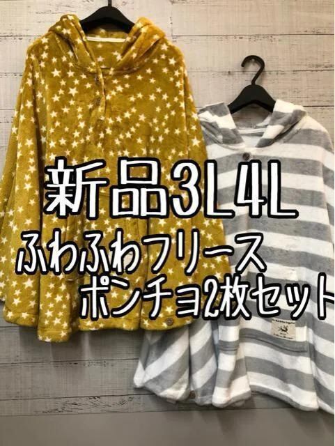 新品☆3L4L♪なめらかボアフリースのポンチョを2枚セットで♪☆t191